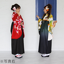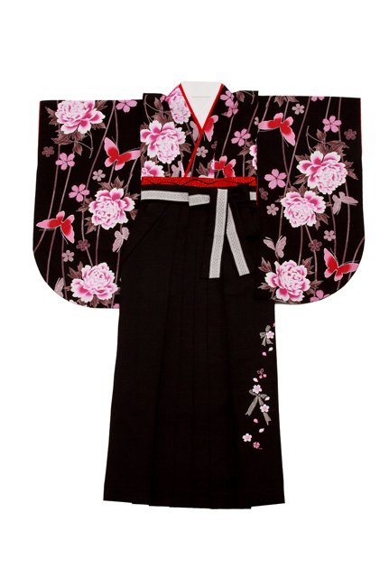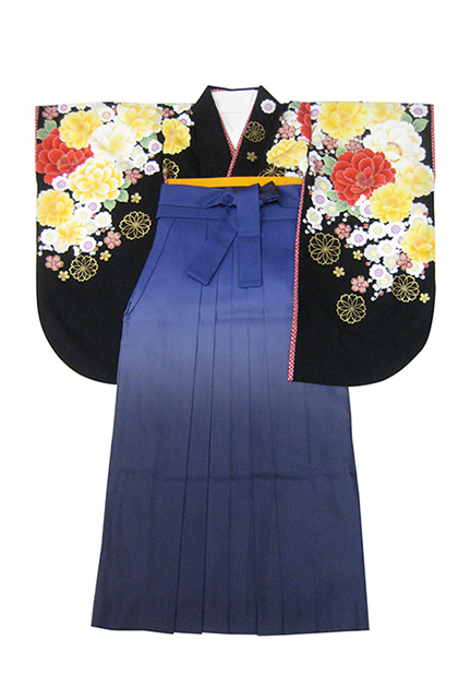 - 黒地に大きな花と花と同系の色の袴であわせてかっこよく!